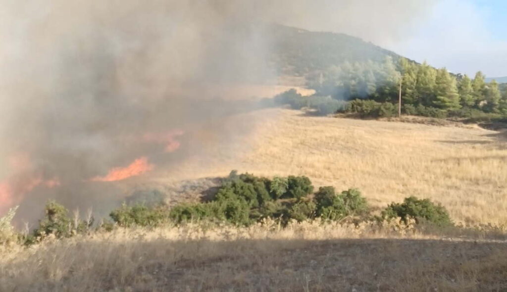 Η μία φωτιά στο Μαζαράκι στην Υλίκη κοντά στην αερολέσχη