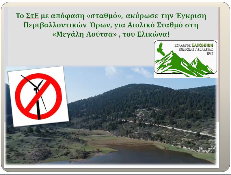 Το ΣτΕ με απόφαση «σταθμό», ακύρωσε την Έγκριση Περιβαλλοντικών Όρων, για Αιολικό Σταθμό στη «Μεγάλη Λούτσα», του Ελικώνα