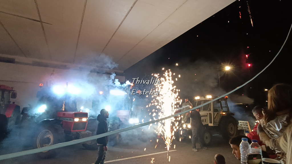 To βίντεο από το άναμμα δέντρου των αγροτών στη Θήβα